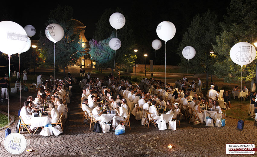 300 persone tutte vestite di bianco, che alle luci del tramonto nel centro storico di Ferrara partono alla ricerca dei luoghi insoliti in cui si terranno aperitivo, una grande cena social open air e tante sorprese.