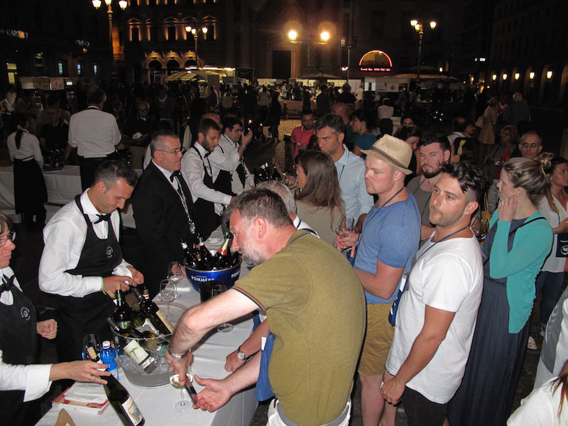 L’assaggio dei vini durante la tappa di Parma