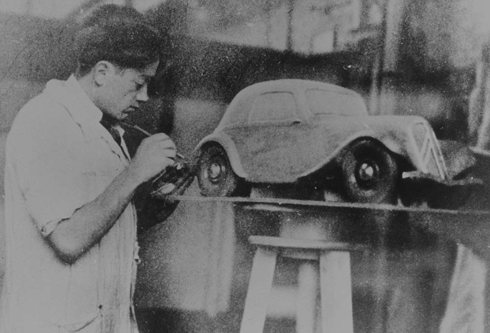Flaminio Bertoni al lavoro su una maquette della TractionAvant