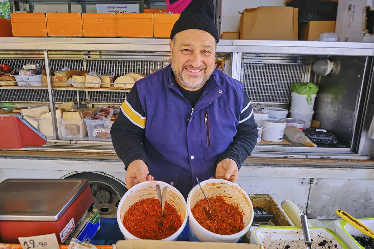 Di buon mattino approdiamo nella piccola piazza centrale circondata dagli unici negozi che hanno già alzato le loro saracinesche: tre bar, una macelleria e il fruttivendolo. Non manca chi, seduto davanti alla sua birra, arrotola lentamente la prossima sigaretta e chi chiacchiera pacatamente con i propri paesani, chissà su quale argomento.